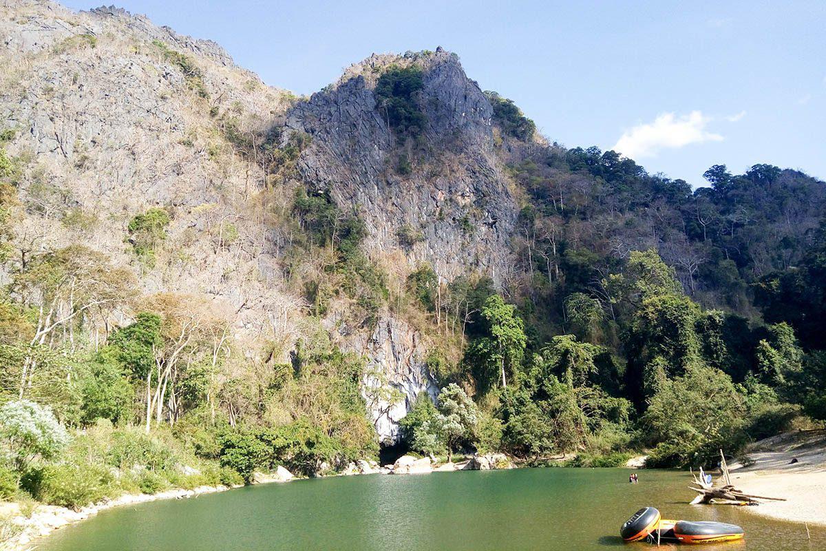 Alternatively, embark on a guided tour inside the nearby Tham Jang Cave. Learn about local mythology associated with the cave as the guide shows the stalactites and stalagmites. Enjoy panoramic views from one of the vistas. Afterwards, take a dip in the caves natural spring waters.